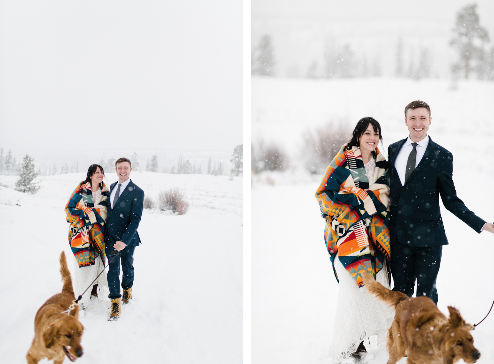 Meg and Pete chose to elope in the mountains of Salida, Colorado the old school way – just the two of them. The decided to make the picturesque Amigo Motor Lodge their home base for the weekend. Heading up from Denver, we saw the forecast for snow and made plans accordingly. The morning of the elopement arrived and even more snow arrived than expected. We quickly changed the location a bit, instead of shooting in Twin Lakes, we set off to the Midland Tunnels in Buena Vista. With the storm on our heels, Meg and Pete shared their vows and pledges to one another in front of a beautiful rock face. Snow fluttering all about. The whole morning had a magic about it. As if we were caught in a snow globe. After the ceremony, we headed back to the lodge for champagne, cake and some much needed time around the fire. The day was perfect. So happy to have the most adventurous couples.